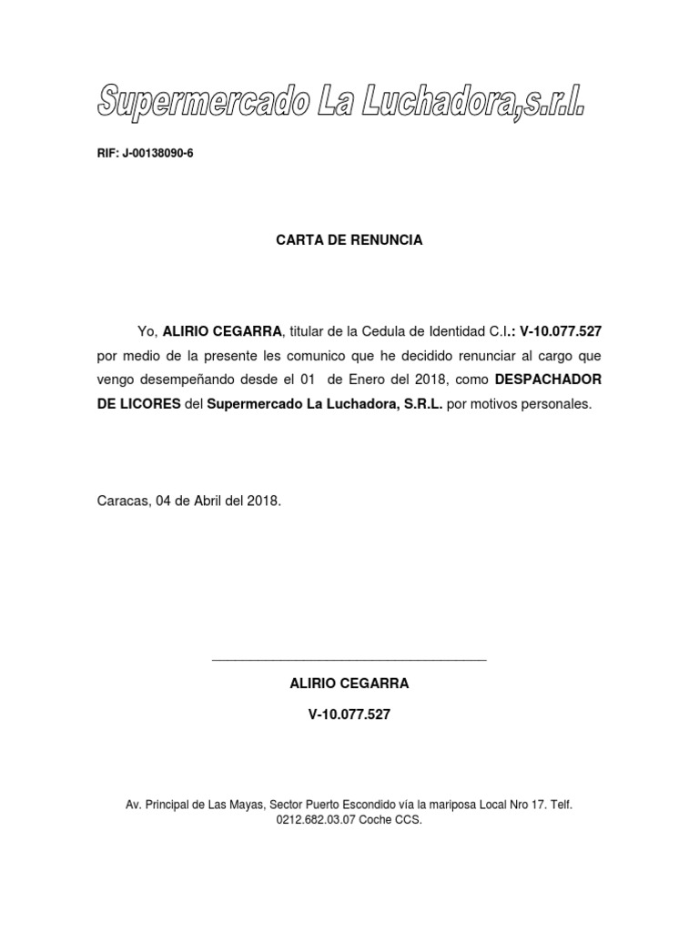 Carta De Renuncia De Mandato Cipa